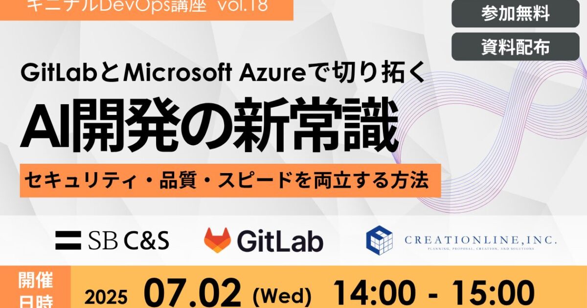2025年7月2日(水)に開催される無料ウェビナー「GitLabとMicrosoft Azureで切り拓くAI開発の新常識:セキュリティ・品質・スピードを両立する方法【キニナルDevOps講座 vol.18】」に弊社からSales & Marketing Team Managerの吉信が登壇!