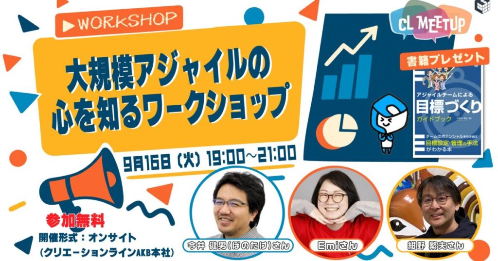 CL MeetUp Vol.40 本記事は 2025/9/16(火)19:00-21:00に、秋葉原会場(オンサイトのみ)で開催するクリエーションライン主催のワークショップのご案内です。 「大規模アジャイルの心を知るワークショップ」とは なぜ前回成功したアプローチが今回は機能しないのか?なぜ優秀な人材が集まっても期待した成果が出ないのか?なぜ情報共有を徹底し…