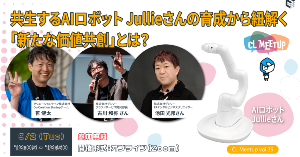 CL MeetUp Vol.39 本記事は 2025/9/2(火)12:05-12:50に、オンライン(Zoom)で開催するクリエーションライン主催のMeetupのご案内です。 プロダクト開発の新しい形を模索する 生成AIの進化が象徴するように世の中が素早く大きく変化しています。これまで人が作業していた作業をロボットやAIにお願いすることで、作業の効率や品質…