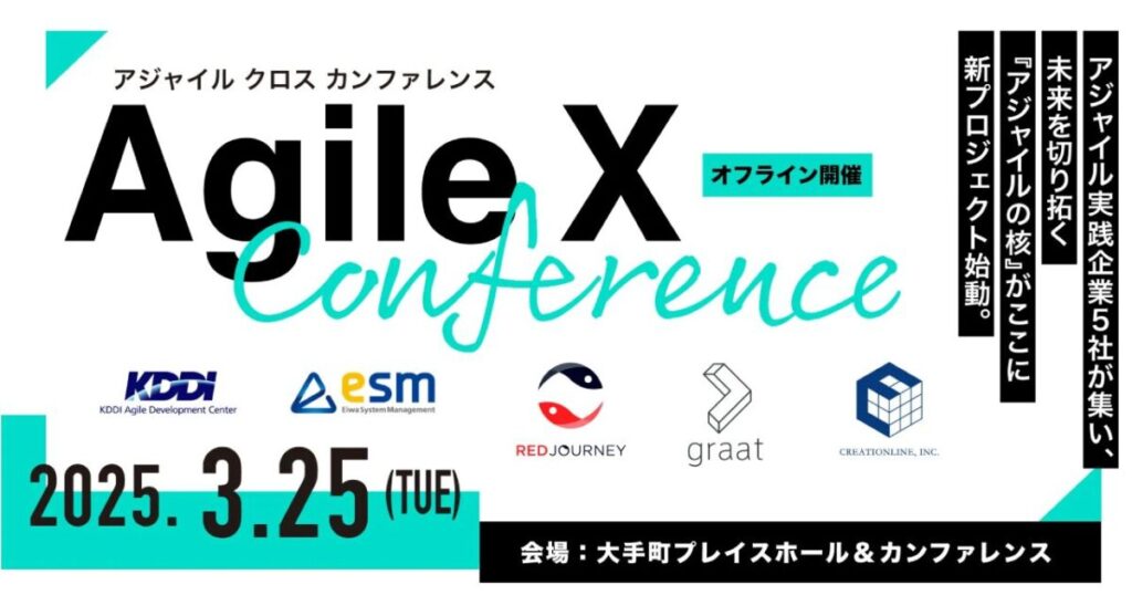 2025年3月25日に開催される「Agile X Conference(アジャイル クロス カンファレンス)」のご案内です!アジャイル クロス カンファレンスはオンサイト(大手町プレイス ホール&カンファレンス)で開催予定です。 OPENING TALK 新たなプロジェクトが発足!?アジャイルを実践する5社の社長が登場! 3月25日(火)13:00-13:3…