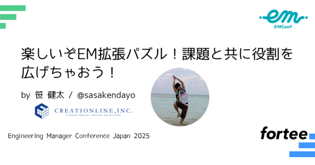 2025年2月27日に開催される「Engineering Manager Conference Japan(EMConf JP)」に弊社Agile CoEリーダーの笹が登壇!EMConf JP 2025はオンサイト(ベルサール新宿グランドコンファレンスセンター)で開催予定です。 セッション内容 楽しいぞEM拡張パズル!課題と共に役割を広げちゃおう! 2025…