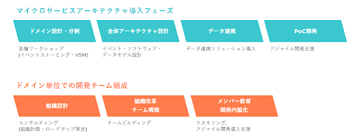 • 業務ドメインに合わせたマイクロサービスアーキテクチャ導入