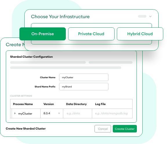 MongoDB Enterprise Advanced は、本番アプリケーション向けのモダンなデータベースを実行するための最も柔軟な方法です。また、Ops Manager を利用することで、オンプレミス、プライベートクラウド、およびハイブリッドクラウドでの直感的なデプロイメントを可能にします。