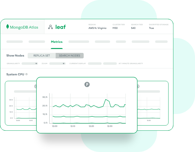 Atlas は、プロビジョニング、パッチ適用、スケーリング、ディザスタリカバリを自動化し、堅牢なセキュリティと、検索操作やデータベースパフォーマンスに対する高度な可視性を提供します。