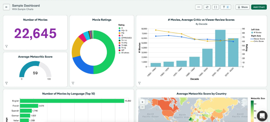 Charts は、MongoDB Atlas のデータを利用して迅速、シンプル、かつ強力にデータ ビジュアライゼーションを実行し、リアルタイムのビジネスの洞察をすばやく簡単に取得できます。