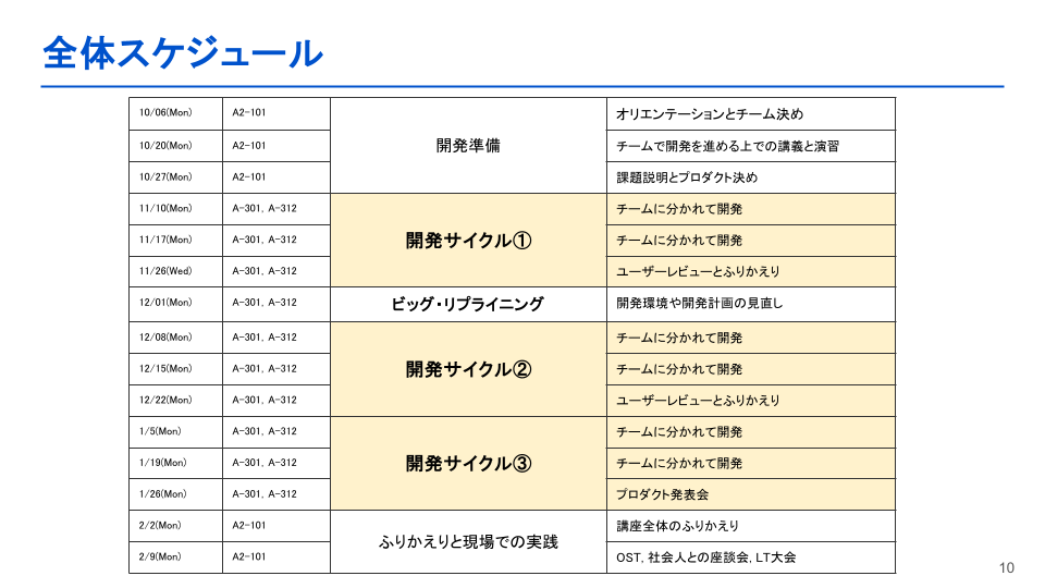 修士1年向け必修として10月に始まり、現在は第7週まで終えて折り返したところです。