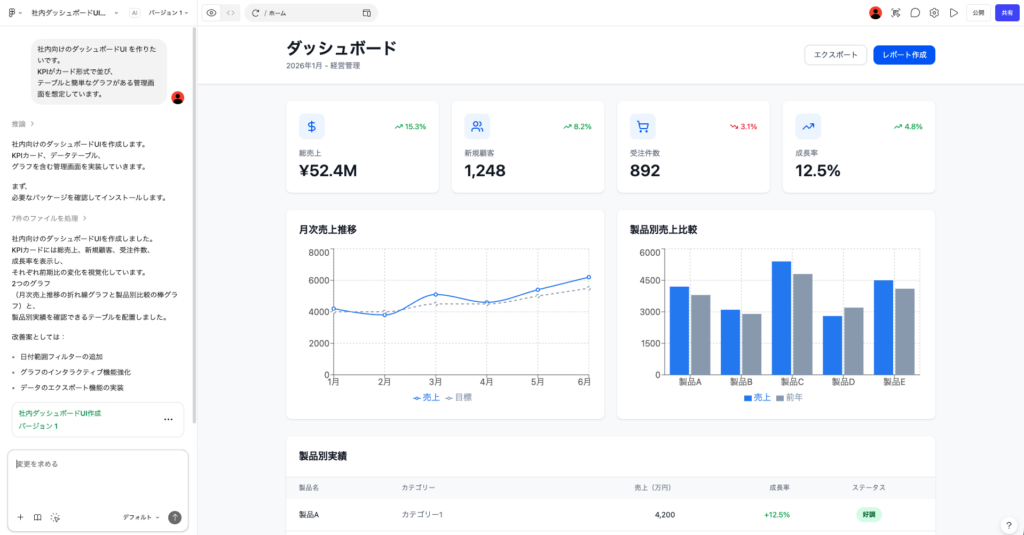 1. テキストプロンプトから「社内ダッシュボード」を作成