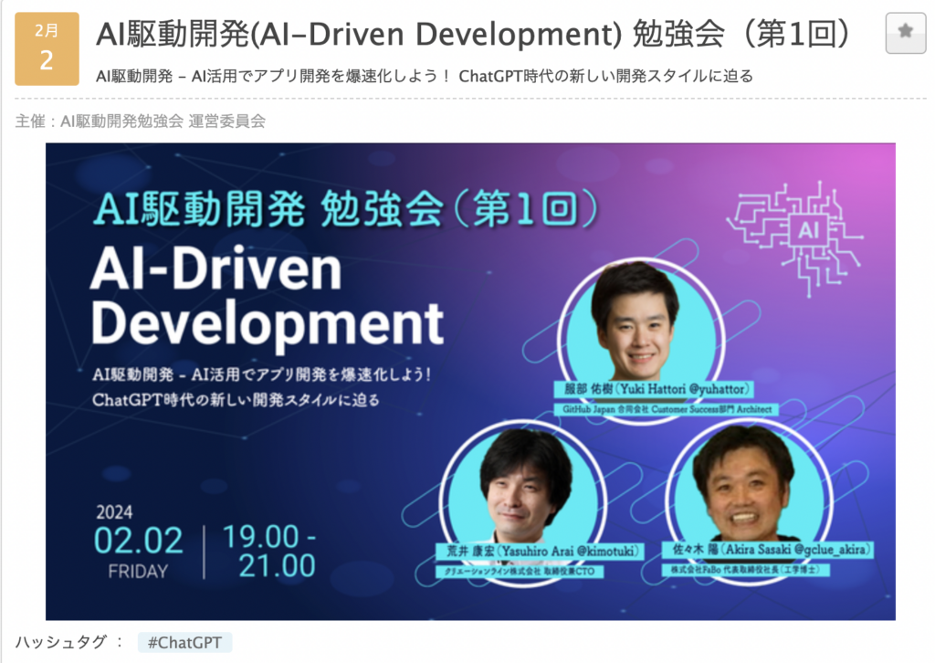 「AI駆動開発(AI-Driven Development) 勉強会(第1回)」を2024年2月2日(金)に開催予定です。今後の生成AI・LLMを利用した開発スタイルについて共有・議論したいと思いますので、本記事の内容に興味を持っていただける方はぜひご参加いただければと思います!!