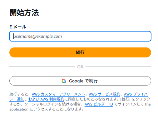 Amazon Q Developerを動かすための認証方法としてAmazon Builder IDという方式を取っています。これは、AWSアカウントを持っていても別途取得する必要があります。