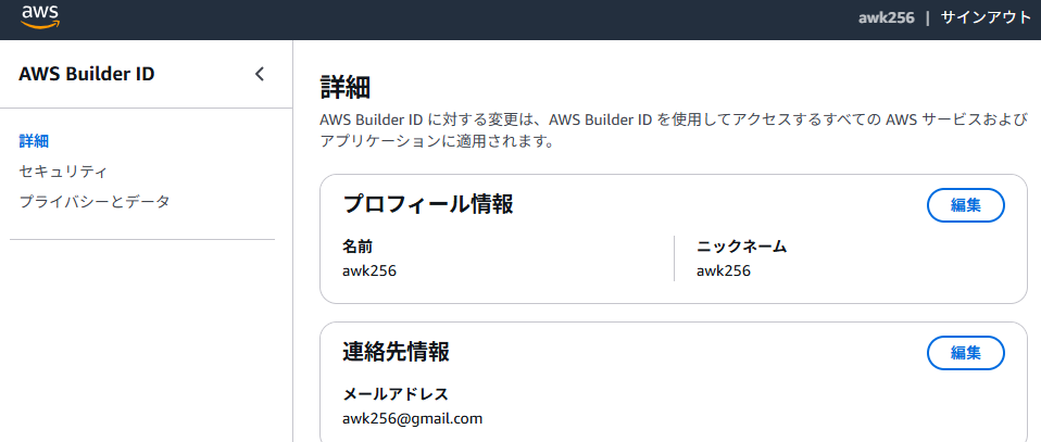 - 個人プロフィールの作成と公開(builder.aws.com エイリアス)
