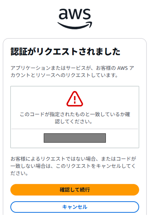 3.以下の画面で表示されているコードが上記の「2.Builder IDでログイン」のコードと一致しているか確認し、次に進んでください。前項で表示されたコードを入力するなどの操作の必要はありません。