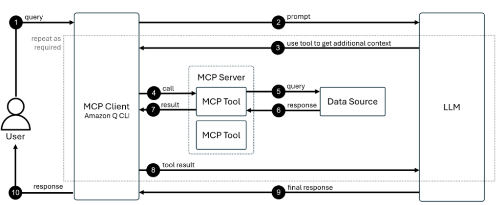 MCPサーバーは、LLMやエージェント(Q CLIなど)から送られるリクエストに応じて、定義済みのツールやリソースを実行し、その結果を返す仕組みです。サーバー側から能動的に処理を開始することはなく、クライアントの要求に応じて動作する「受動的」な設計になっています。