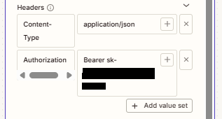 - Authorization: (OpenAIを利用するためのAPIキーを設定)