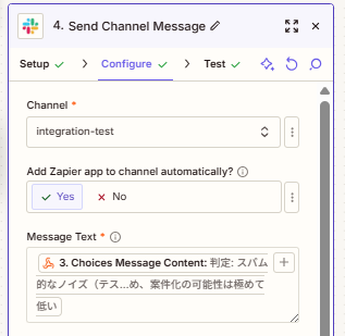 あとは仕上げとして、生成された回答文をSlackに投稿します。