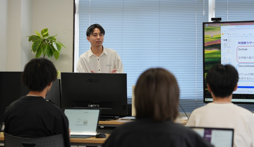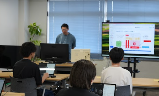 夏のインターンシップは、コンテンツ作成に協力してくれた25卒採用の方々に、一部の内容で講師をお願いしました。学生にはチームで「AI エージェントが旅程を提案してくれるサービス」を開発してもらい、AI駆動開発やモブプログラミングを体験してもらいました。