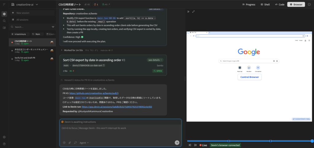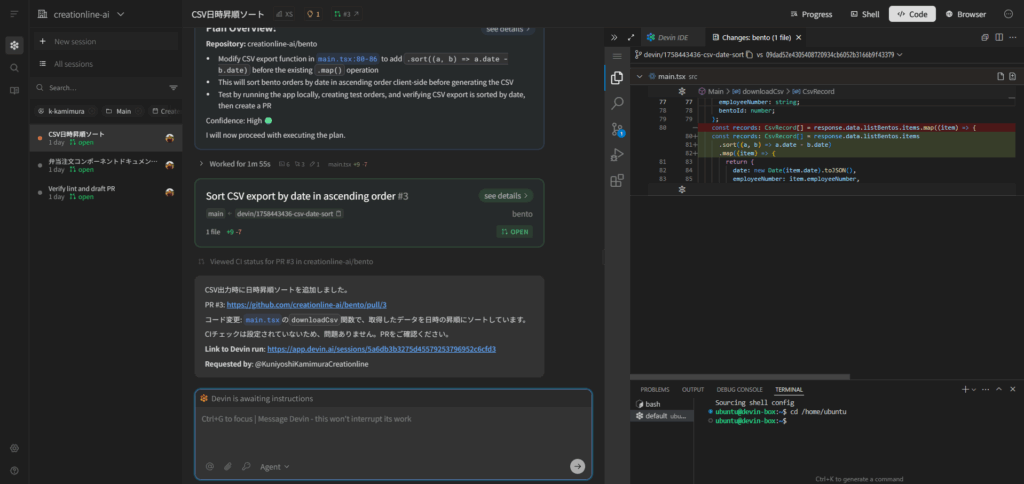 Devin IDE での実装・途中での追加指示・引き継ぎ