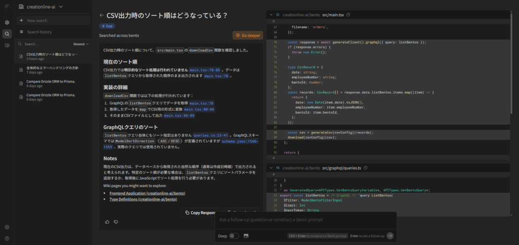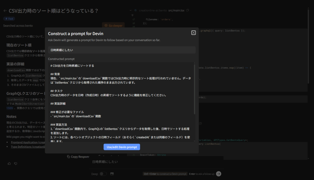 Ask DevinでCSV出力時のソート順はどうなっている?