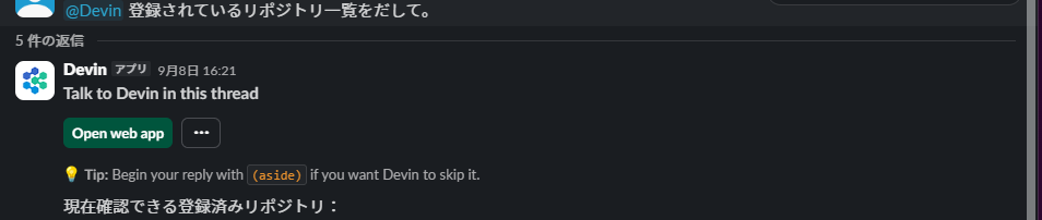 Slackのスレッドで@Devin