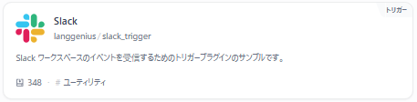 表示名が1つ目のものと同じく「Slack」となっていて紛らわしいですが、こちらも開発元であるLangGeniusによって提供されているもので、タイプは「トリガー」になります。