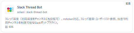 2つ目のSlack Post(solaoi/slack-post)と同じユーザーさんによって提供されているもので、タイプは「拡張」になります。