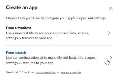 プラグイン公式ページの設定ガイドにある通り、Slackからプラグインへの繋ぎとなるSlackアプリ(ボット)を作成していきます。