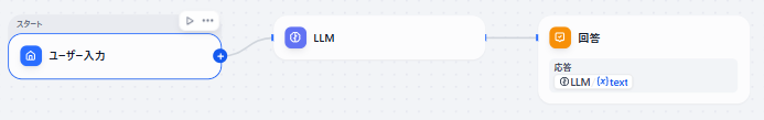 チャットフローの場合はワークフローと異なり、最初から以下のような3つのノードが作成された状態になります。