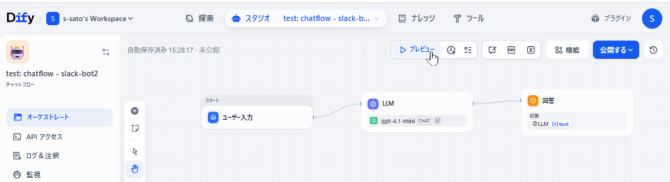 (4) Difyでチャットフロー実行