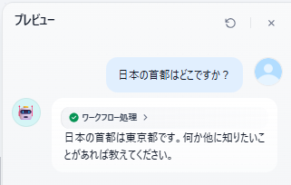 チャットフローが思った通りに動作するかを確認するため、画面上部の「プレビュー」をクリックします。