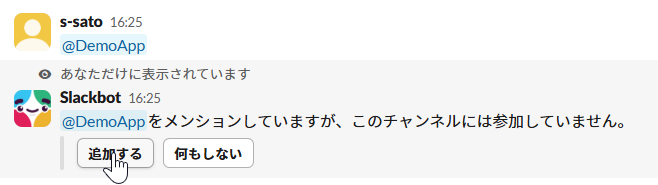 まずSlackBotを任意のチャンネルに招待します。