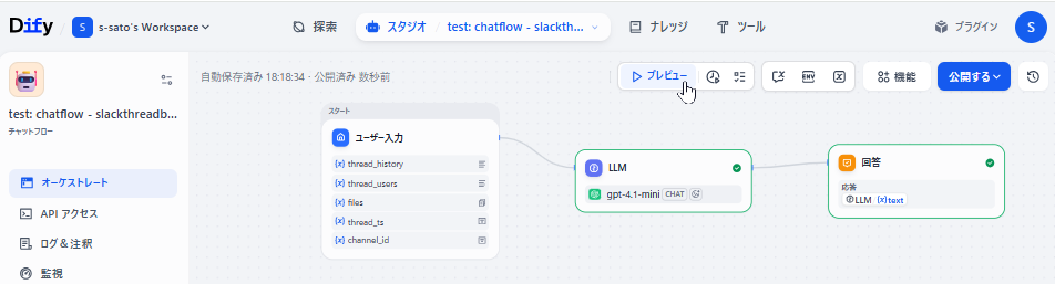 (4) Difyでチャットフロー実行