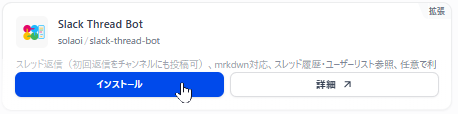 「Slack Thread Bot」を探して、「インストール」をクリックします。