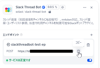 先ほど作成したチャットフロー用のエンドポイントが追加されましたので、今度はここで生成されたエンドポイントのURLをコピーして控えておいてください。