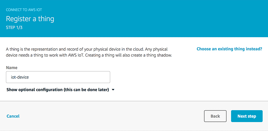 Thing は AWS 上で物理デバイスを管理するための仕組みです。 - 接続キットのダウンロード
