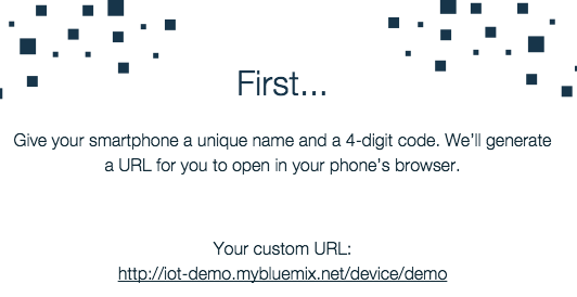 こちらと同様の仕組みを用いてNode-REDのInputとして用いたのが私のデモです。この場合はまずモバイルデバイスでphonesensor.mybluemix.netにアクセスします。