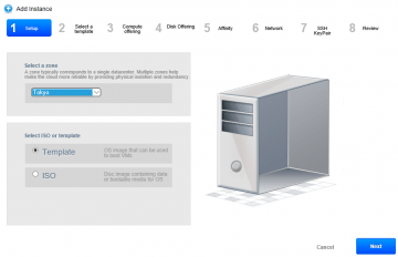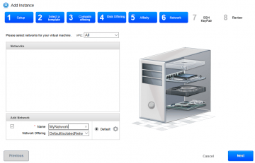 Add Instance のウィザードが表示されます。基本的には何も設定せず、 [Next] で次へ進んでもらって構いません。ただし、[Add Network] の [Name] フィールドだけは適当に名前を指定してください。