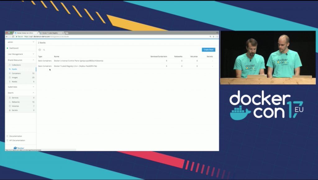 今度は、コンテナのライフサイクルサポートの機能を見せるために、Universal Control Plane を通してSwarm/Kubernetes の両方から管理するデモを見せるため、この2名が登壇。
