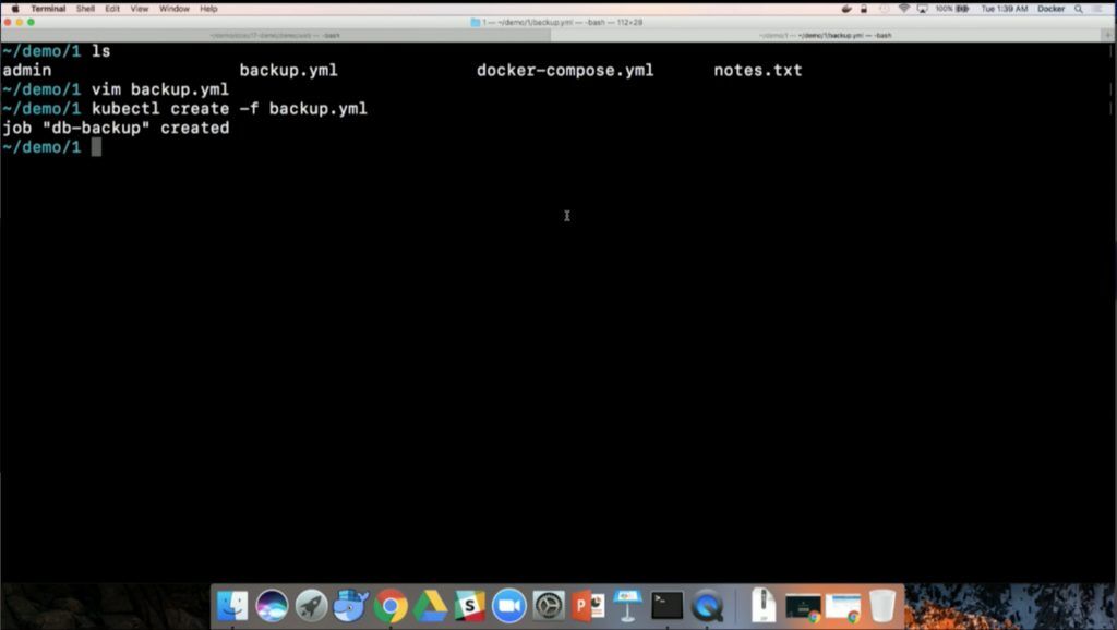 ここで、Kubernetesで提供されるバックアップツールを使って、バックアップ処理を行うデモ。