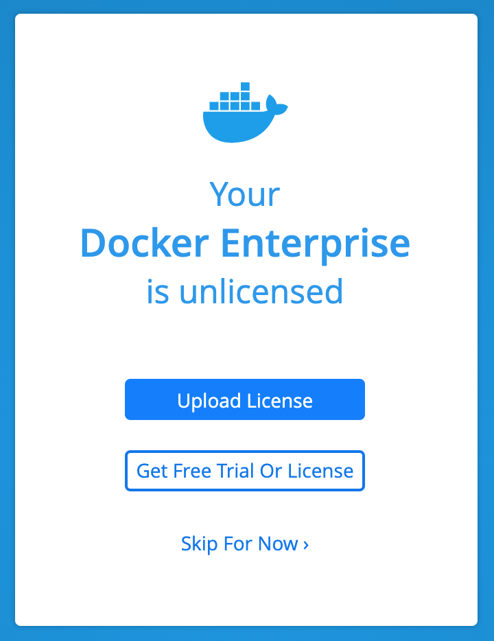 ライセンスがある場合は、Upload License をクリックし、*.licファイルを選択します。ライセンスがない場合は Skip For Now をクリックします。