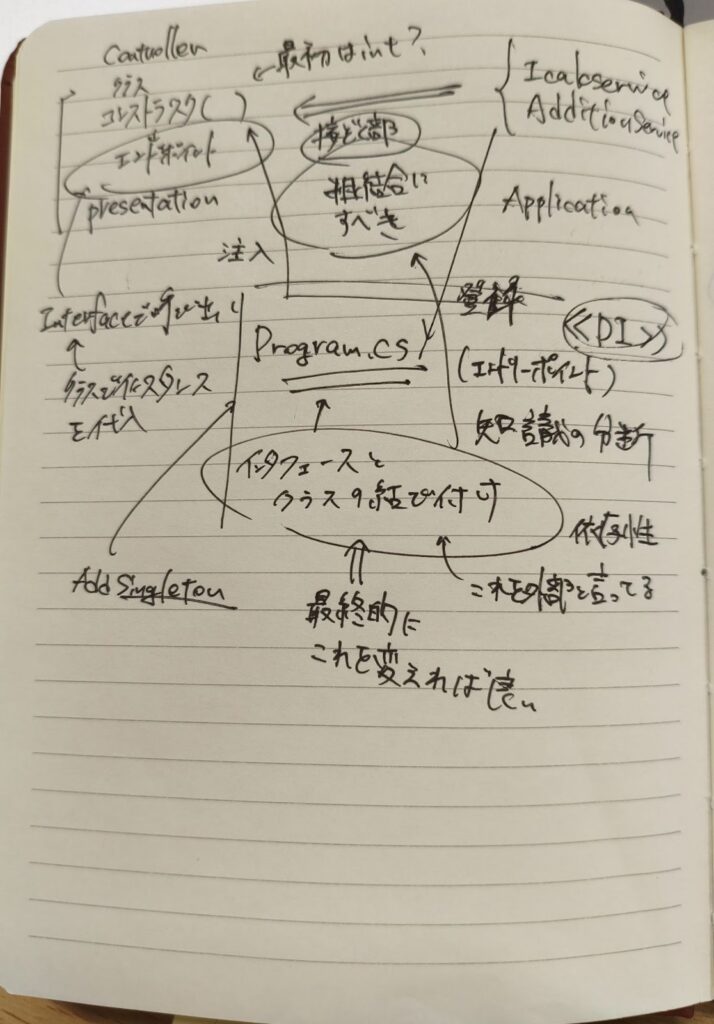 レイヤードアーキテクチャの概要を学び、足し算を行うロジックをレイヤードアーキテクチャを用いて実装しました。時間内に終わらせることができませんでした。レイヤードアーキテクチャ難しい…