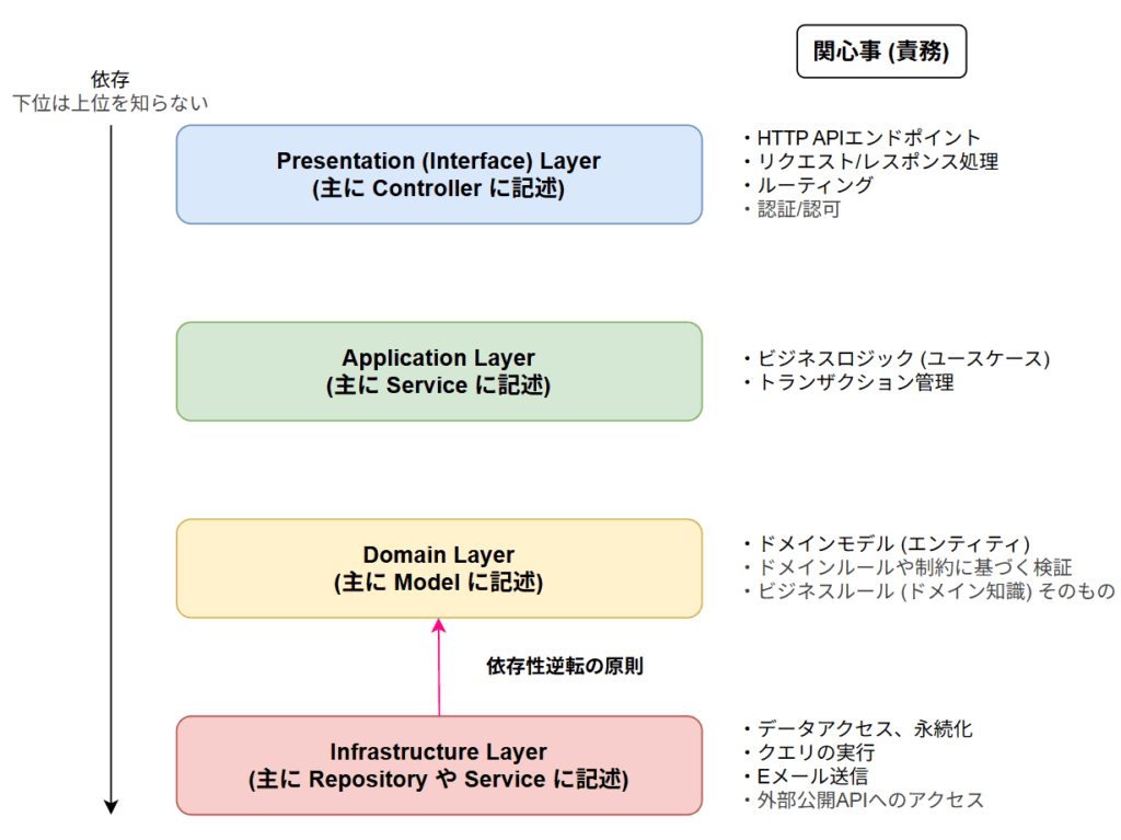 レイヤードアーキテクチャ : 関心ごとに応じて複数の層に分ける設計パターン