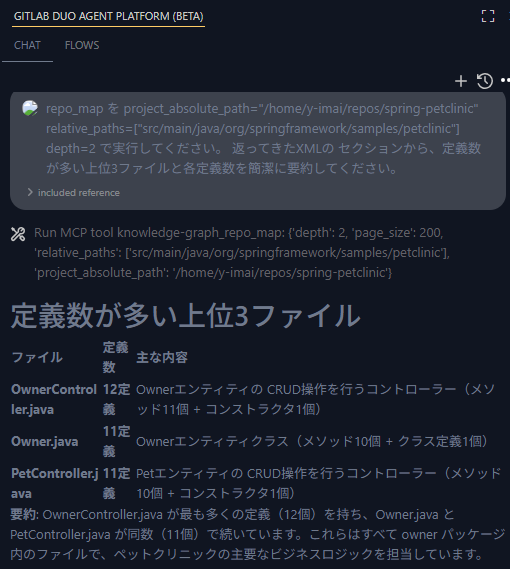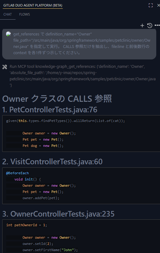 Java のファイル横断参照が機能しており、エージェントはコードの特定部分がアプリケーション全体でどのように利用されているかを瞬時に把握できることが確認できました。