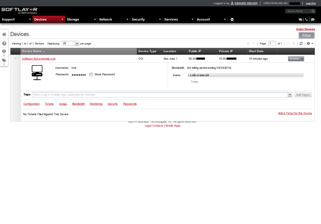 登録や仮想サーバの準備が完了したら、SoftLayerのカスタマーポータルへログインします。