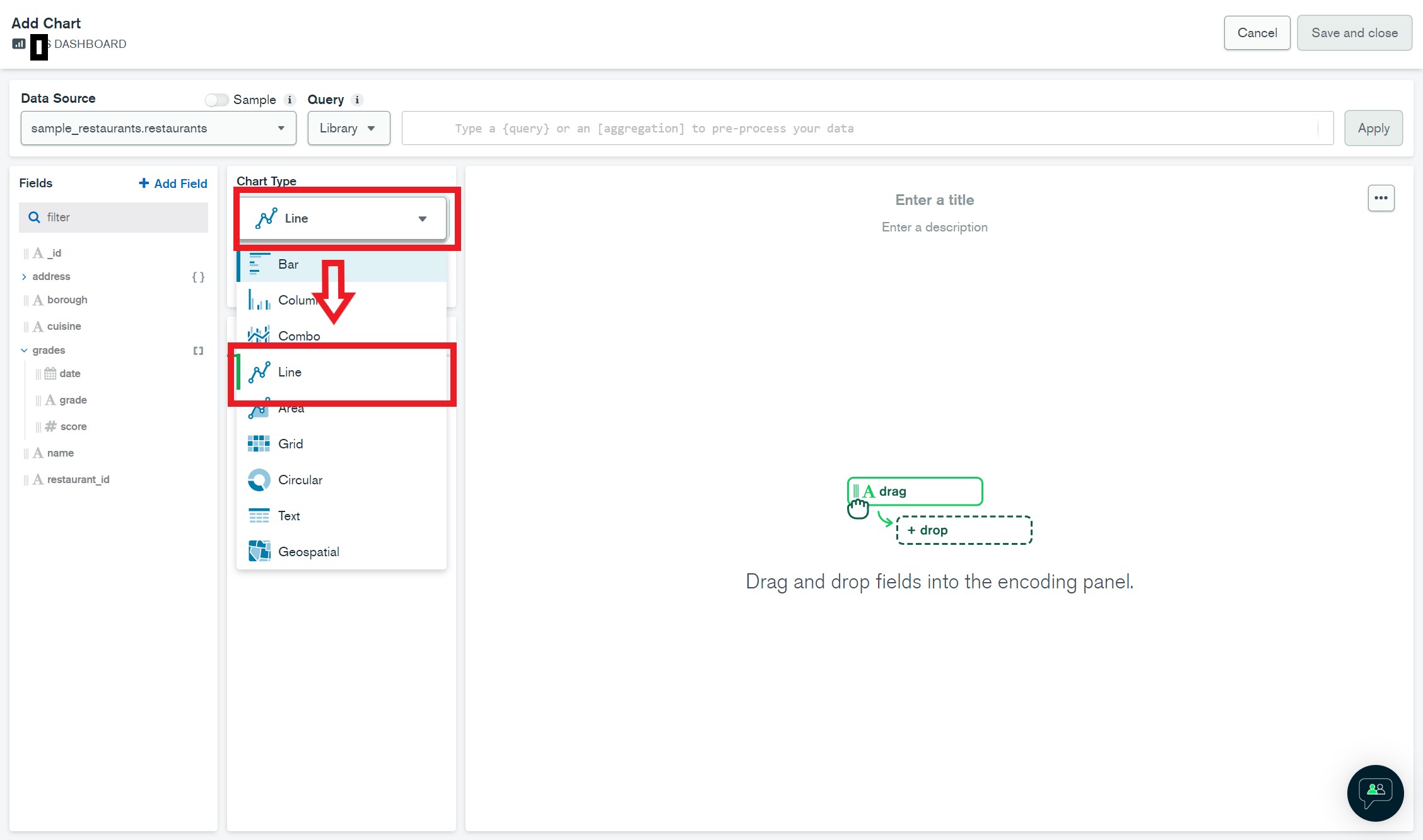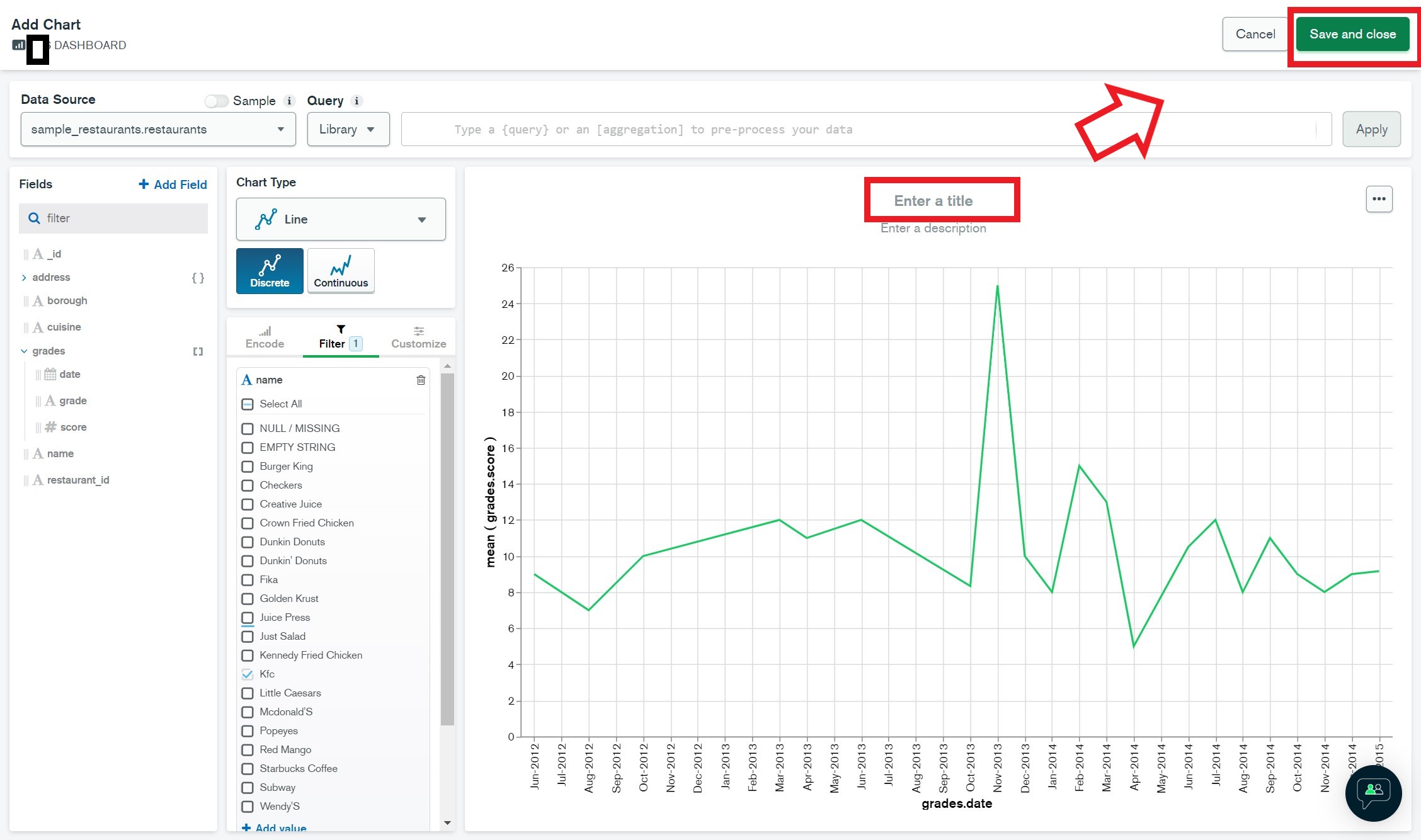 グラフに名前をつけてから、右上の[Save and close]を押下します。