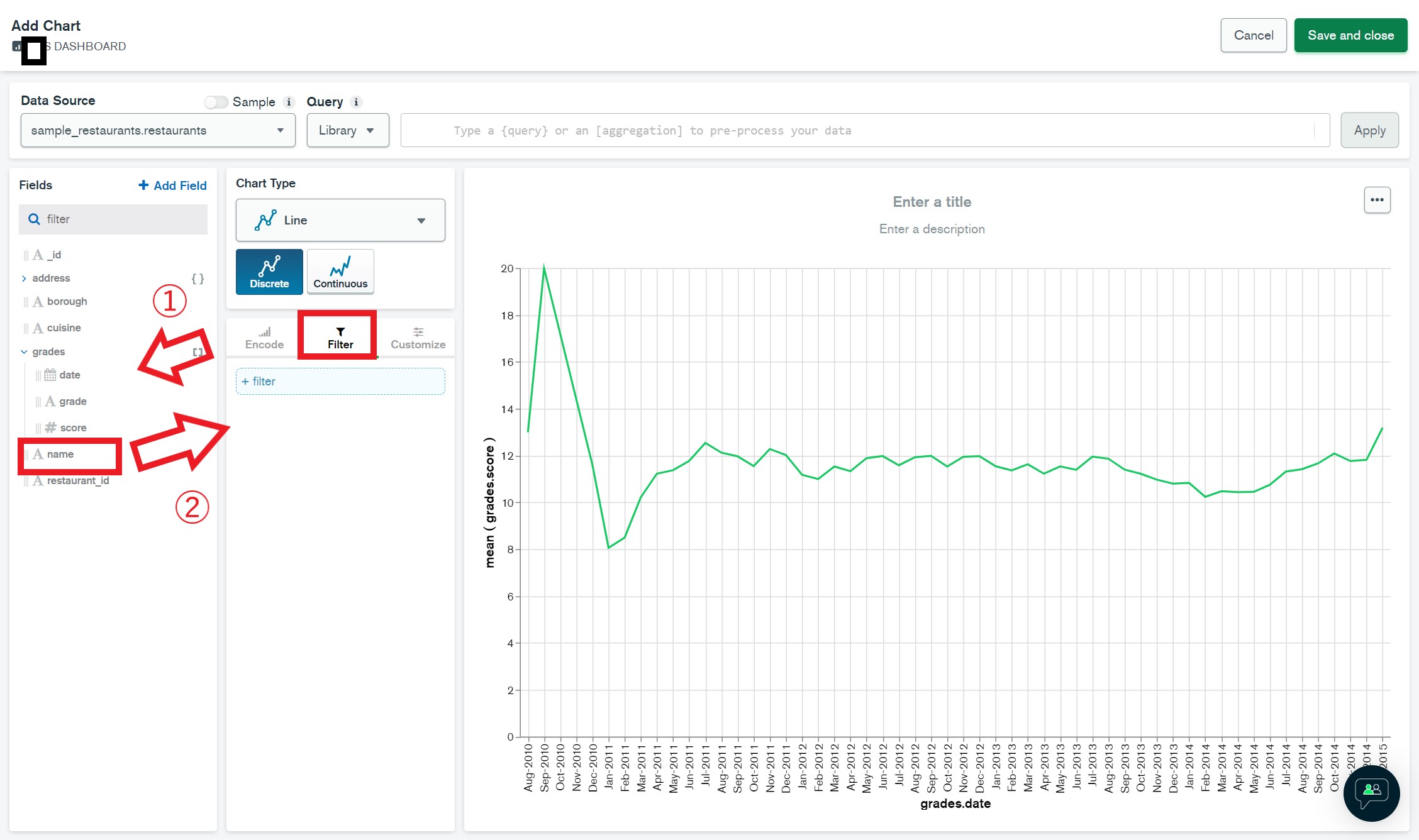 今回はレストランのスコアの平均値がどのように推移しているかを表すグラフを作成します。