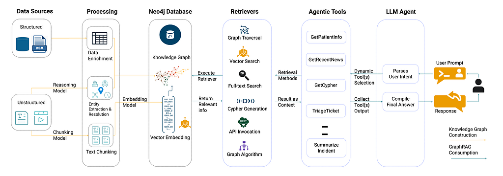 主要なプラットフォームが現在エージェント機能を出荷しています。Microsoft 365 Copilotにはマルチエージェントオーケストレーションとエージェントストアが含まれており、Google Agentspaceはエージェント主導の作業を対象とし、Amazon Q Businessはマルチステップ検索のためのエージェント型RAGを追加しています。MCPのようなオープンスタンダードやLangGraphのようなフレームワークも導入を加速させています。洞察: ベンダーが実行環境を構築しますが、信頼性を決定するのはあなたのデータとグラフベースのメモリであり、そのため多くのチームがエージェントとNeo4j GraphRAGを組み合わせています。