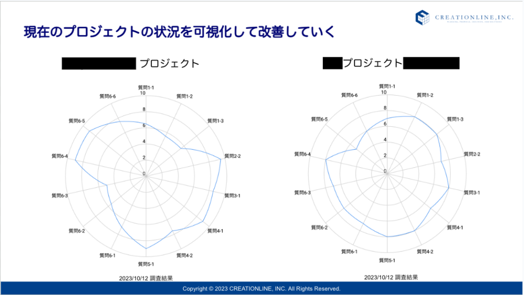 プロジェクトでは、その構成要素の大項目としてこの定義をベースにしました。現在、各プロジェクトごとに、それぞれの項目の現在地を10段階で議論し、プロットしています。これは現在地を明確にし、それぞれのプロジェクトで私たちが全社で実現していく「CL指名型開発」に近づけるための議論を生み出すことを目指しています。また、その議論から生まれた、会社として支援する価値がある点も明確にしていけると考えています。