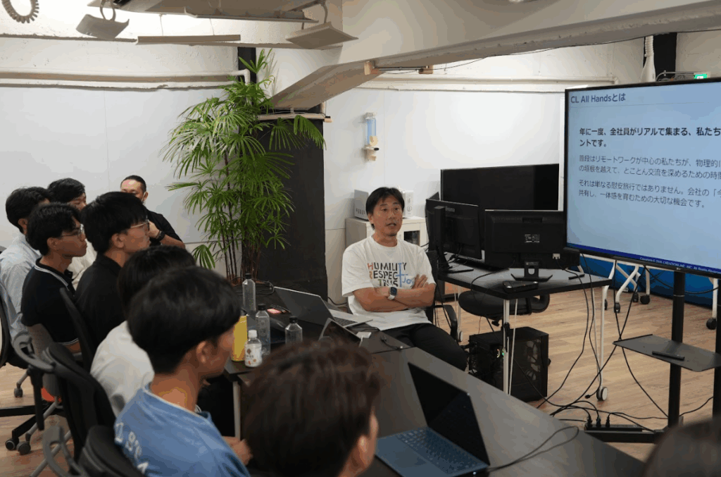 毎年開催している年に一度の全メンバー参加型の対面イベント「CL All Hands」。フルリモートワークを基本とする私たちにとって、この対面でのイベントは、まさに特別な意味を持つことをCEOの安田さん自ら熱く語っていただきました。
