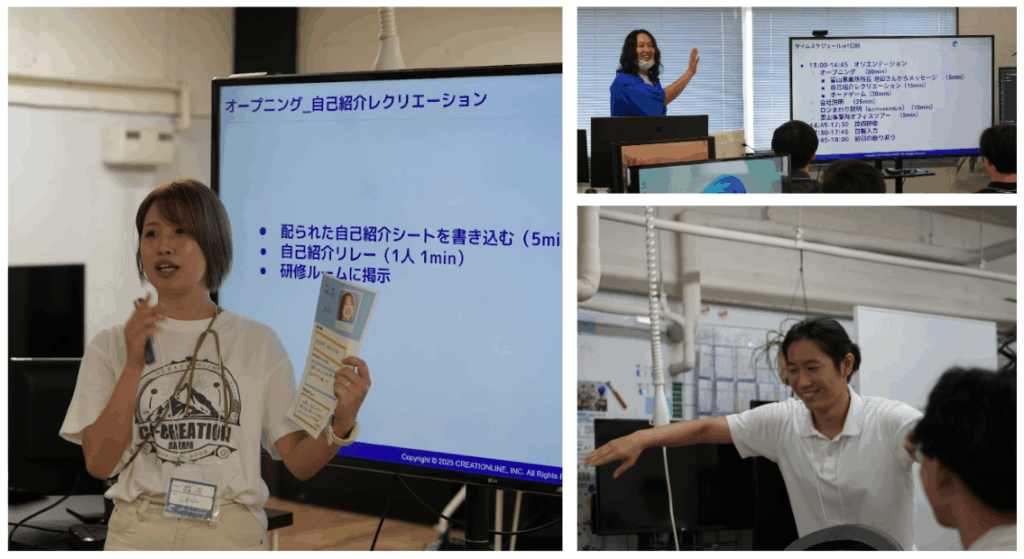 その上で、私たち人事総務チームの運営側が大切にしたのは、クリエーションラインという会社のカルチャーを“肌で感じてもらう”こと。技術研修の詳細は別のブログで紹介されていますので、このブログでは、技術以外のコンテンツや会社の雰囲気に焦点を当てて振り返りたいと思います。