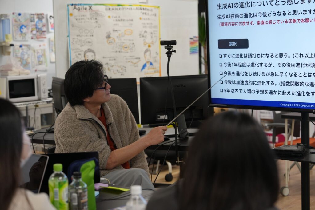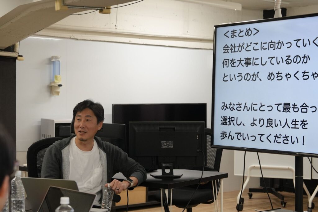 夕方からは荒井さんによる「AI講義」と、CHROの小笠原さんによる「就活講義」を実施。