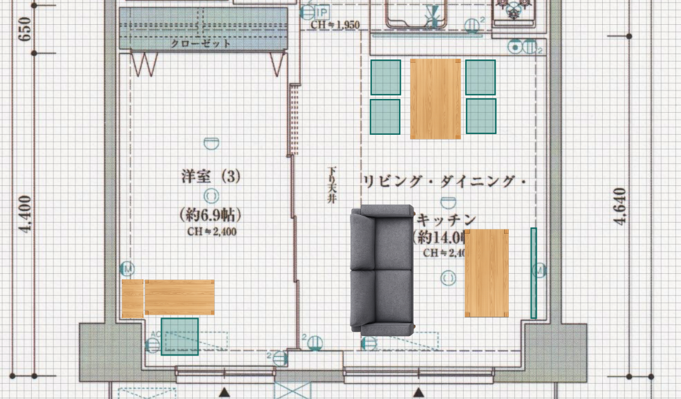 実際に引っ越す前に、既存の家具の配置イメージと設置できる範囲のシミュレーションが簡単にできました。